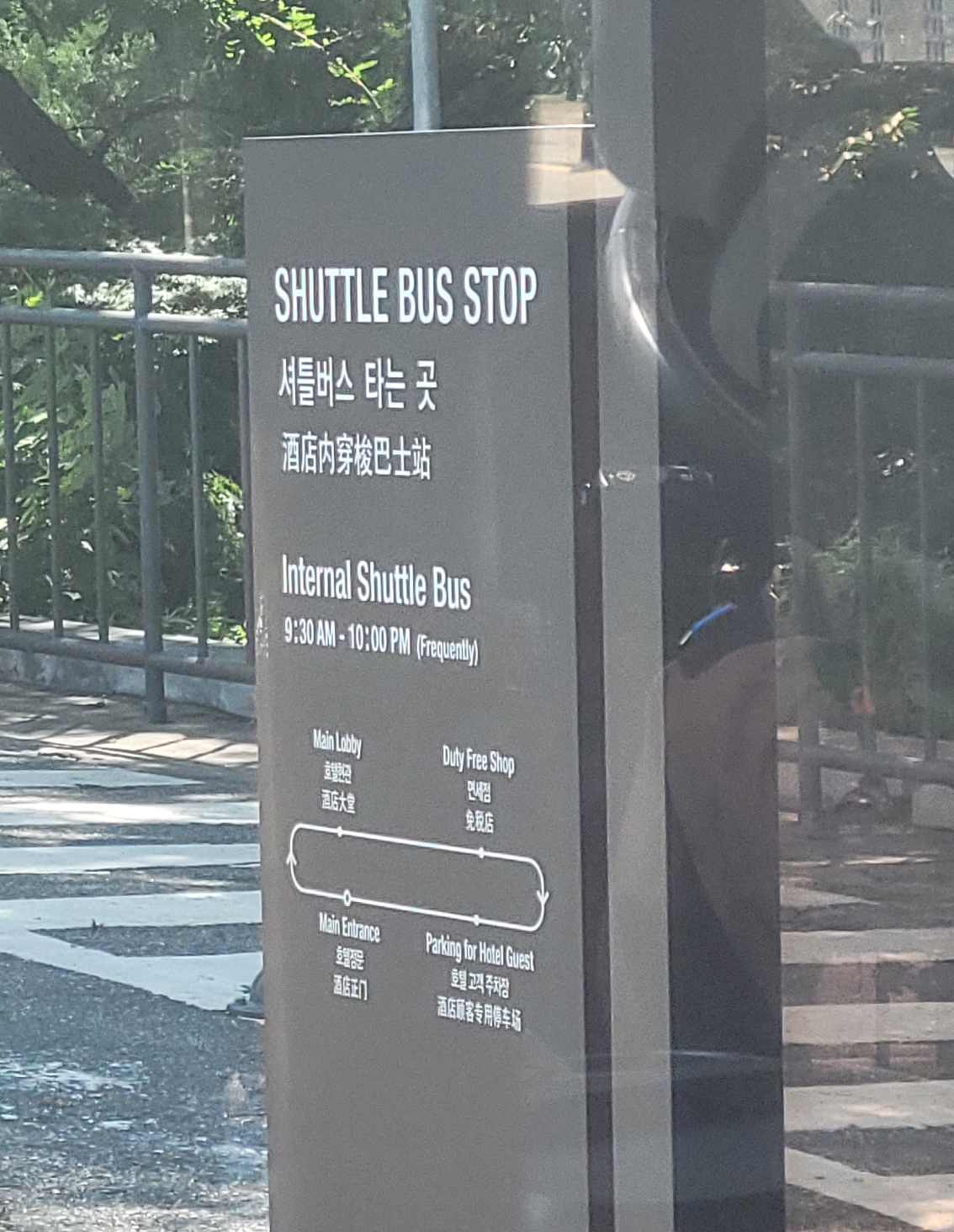 셔틀은 로비, 면세점, 주차장, 호텔정문(역앞)